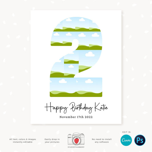 2026 Photo Calendar Template with Arch Photo Collage – One Page Yearly Calendar for Canva & Photoshop – Printable Family Photo Gift