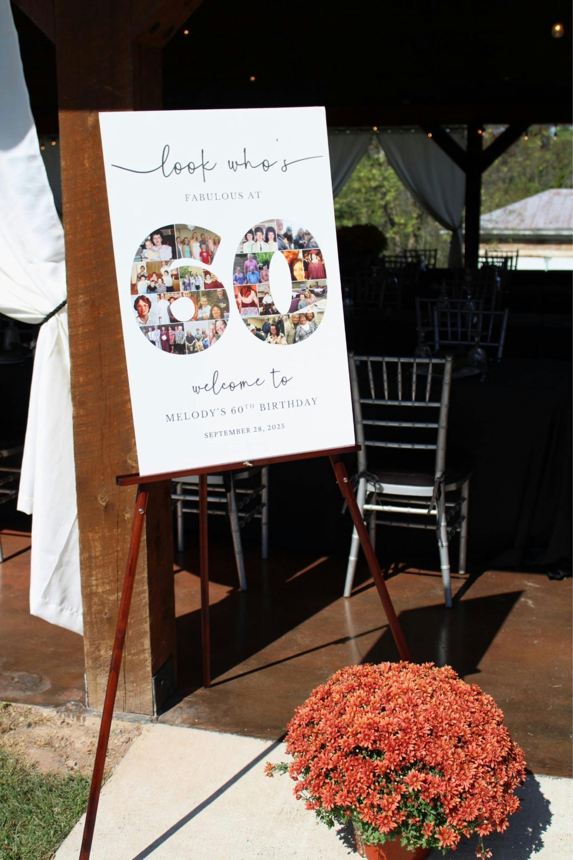 Create a Beautiful 60th Birthday Photo Welcome Sign – Instantly Editable in your browser or free app for mobile devices