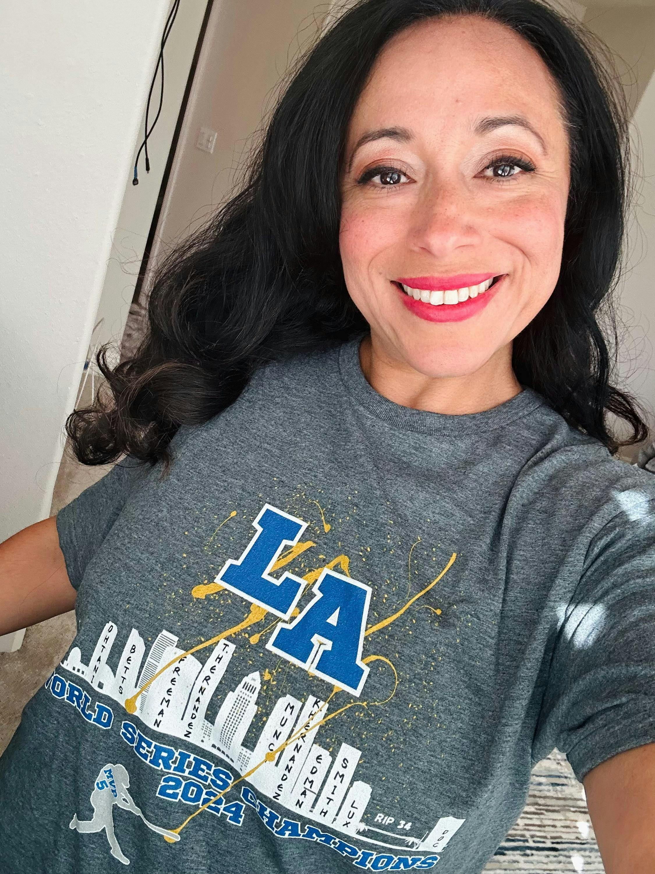 Birdie I love the quality so much, looks exactly like the image and the feel of the fabric is very comfortable, not stiff. I am so excited to proudly wear this! Go Dodgers!