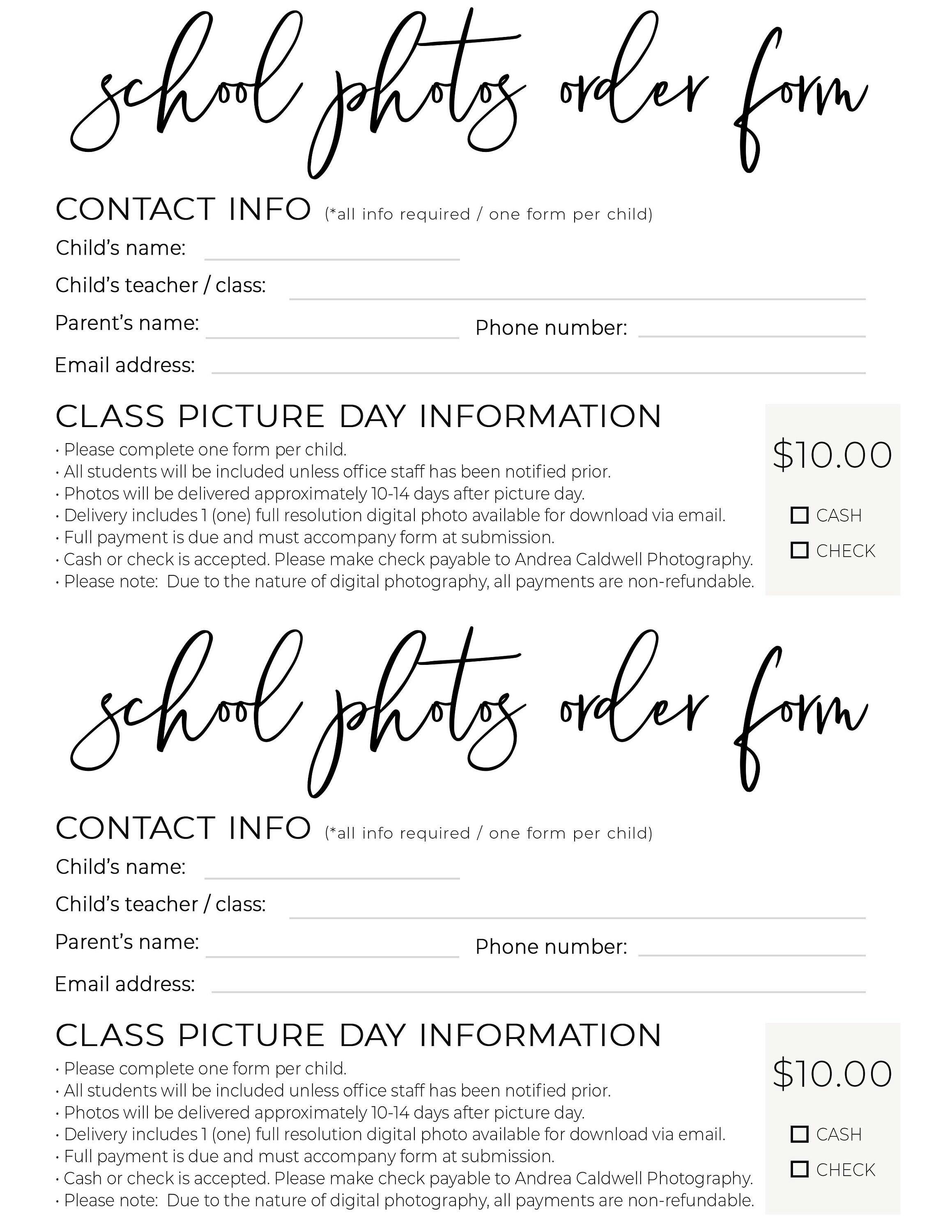 School photography order form | "Casual script" | Edit online right away & Photoshop template included