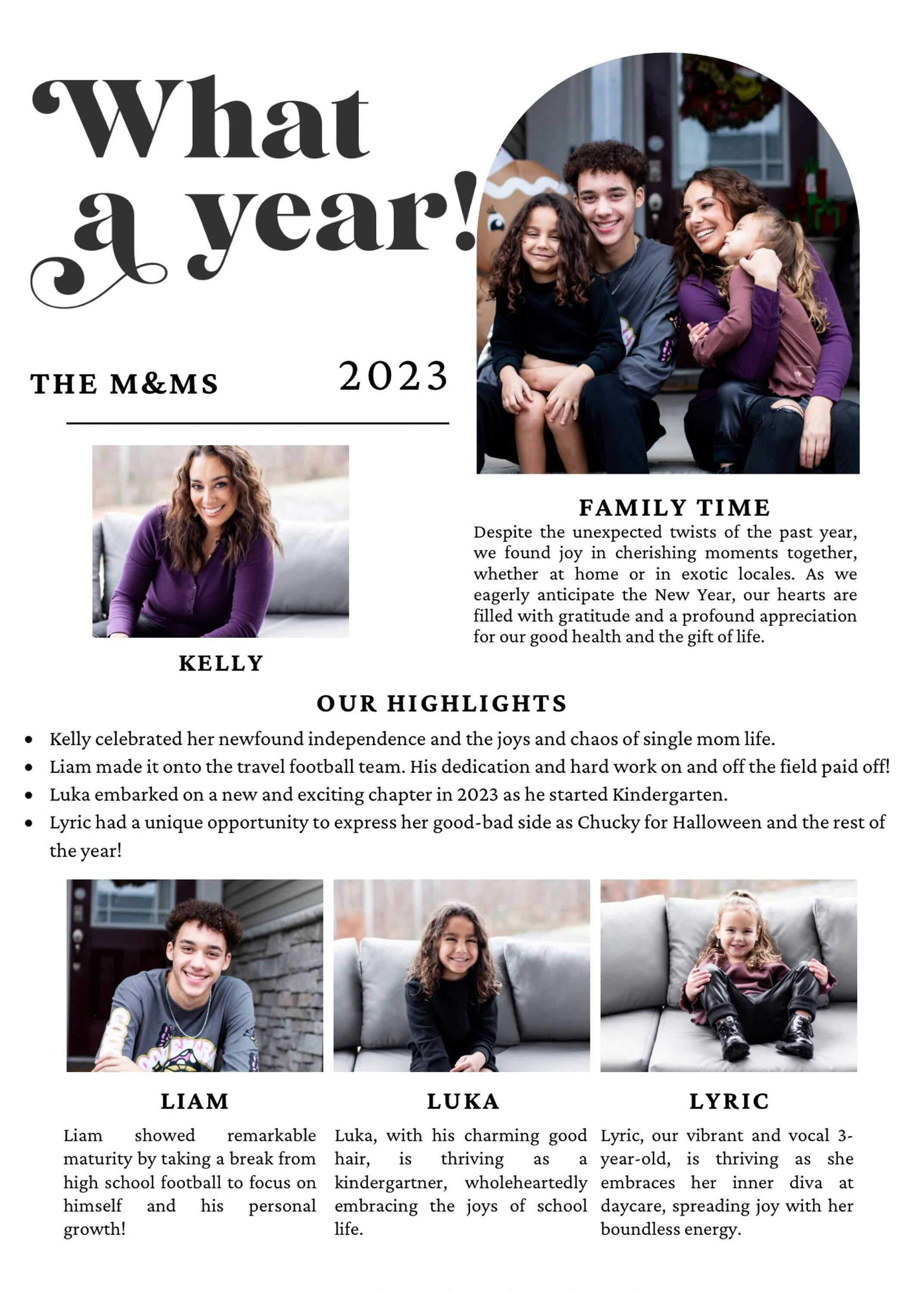 Create a personalized year in review Christmas card with this easy-to-use template. Edit it directly in your browser with Canva's free online editor and capture all the highlights of your year. Once you're done, you can print it at home or take it to a print lab. Perfect for sharing your annual updates with family and friends in a festive way.