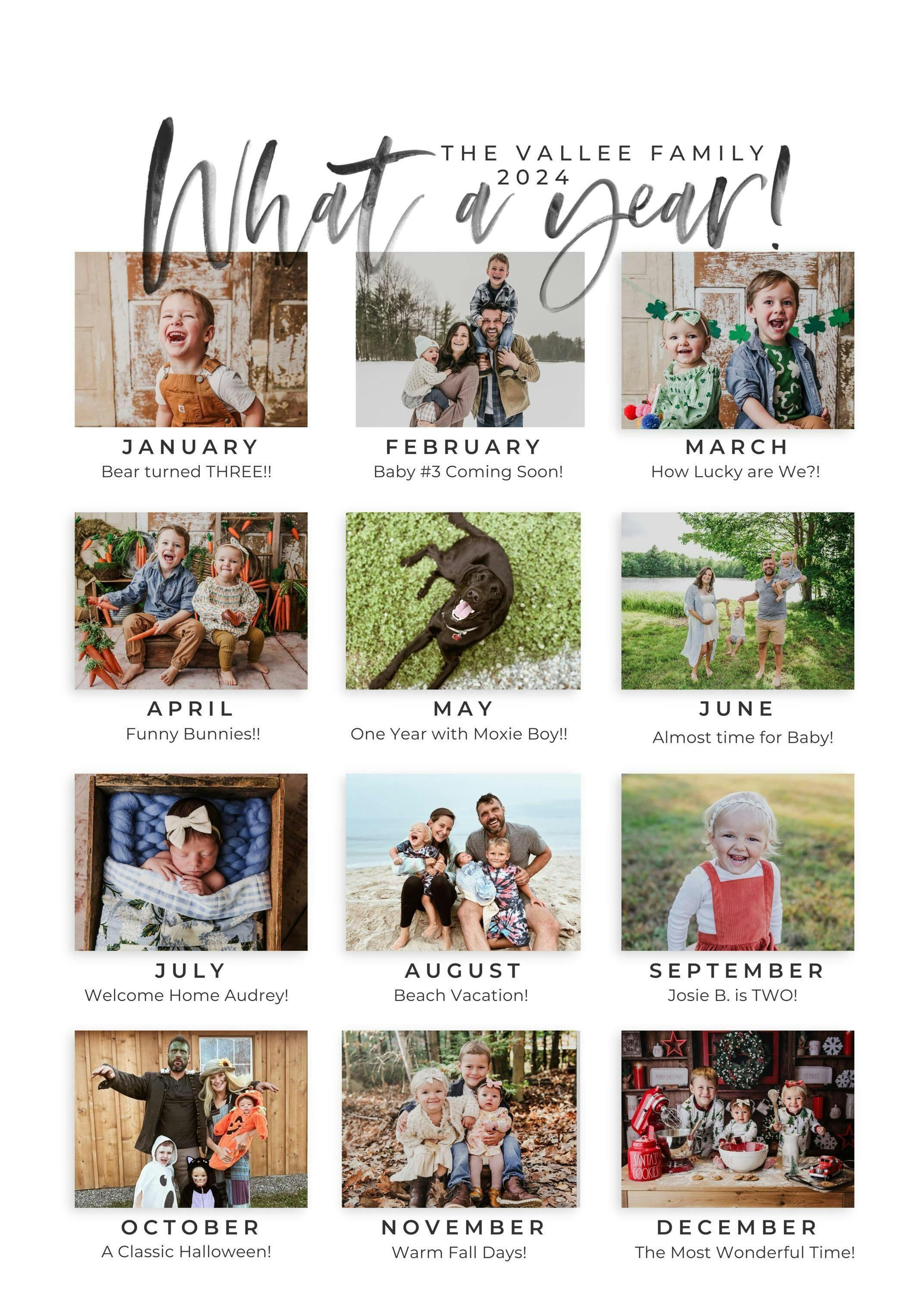 Our Year in Review Christmas card template is perfect for summarizing the highlights of your year. Easily edit it right in your browser using the free online editor, Canva. Once you're done, you can print your card at home or take it to a print lab. Create a personalized and memorable Christmas card quickly and conveniently.